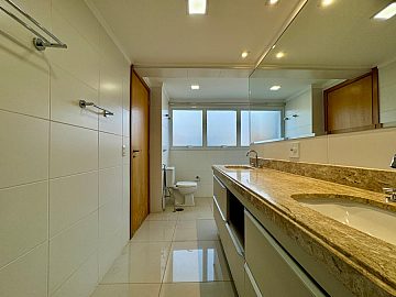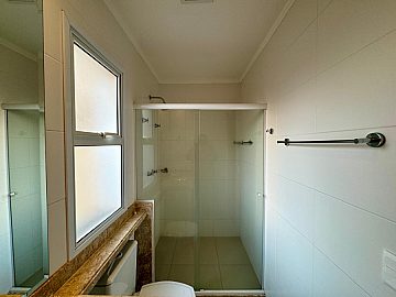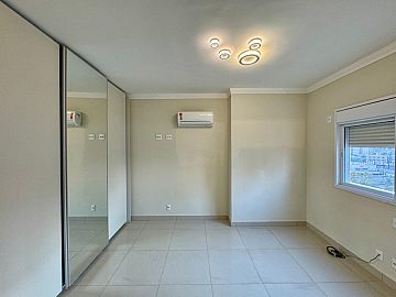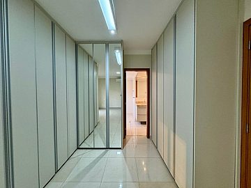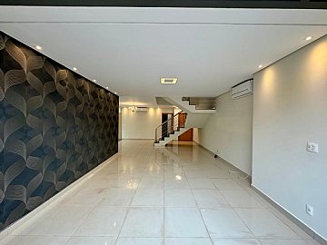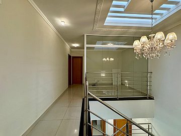No piso superior, a área íntima dispõe de 3 suítes com armários planejados e ar-condicionado, sendo a suíte master com closet e banheiro com cuba dupla, proporcionando conforto e privacidade.